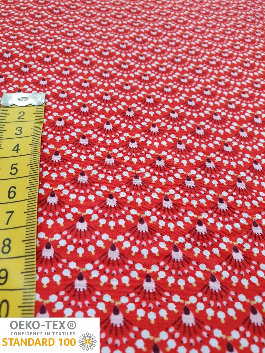Popeline de coton Eventails Rouge