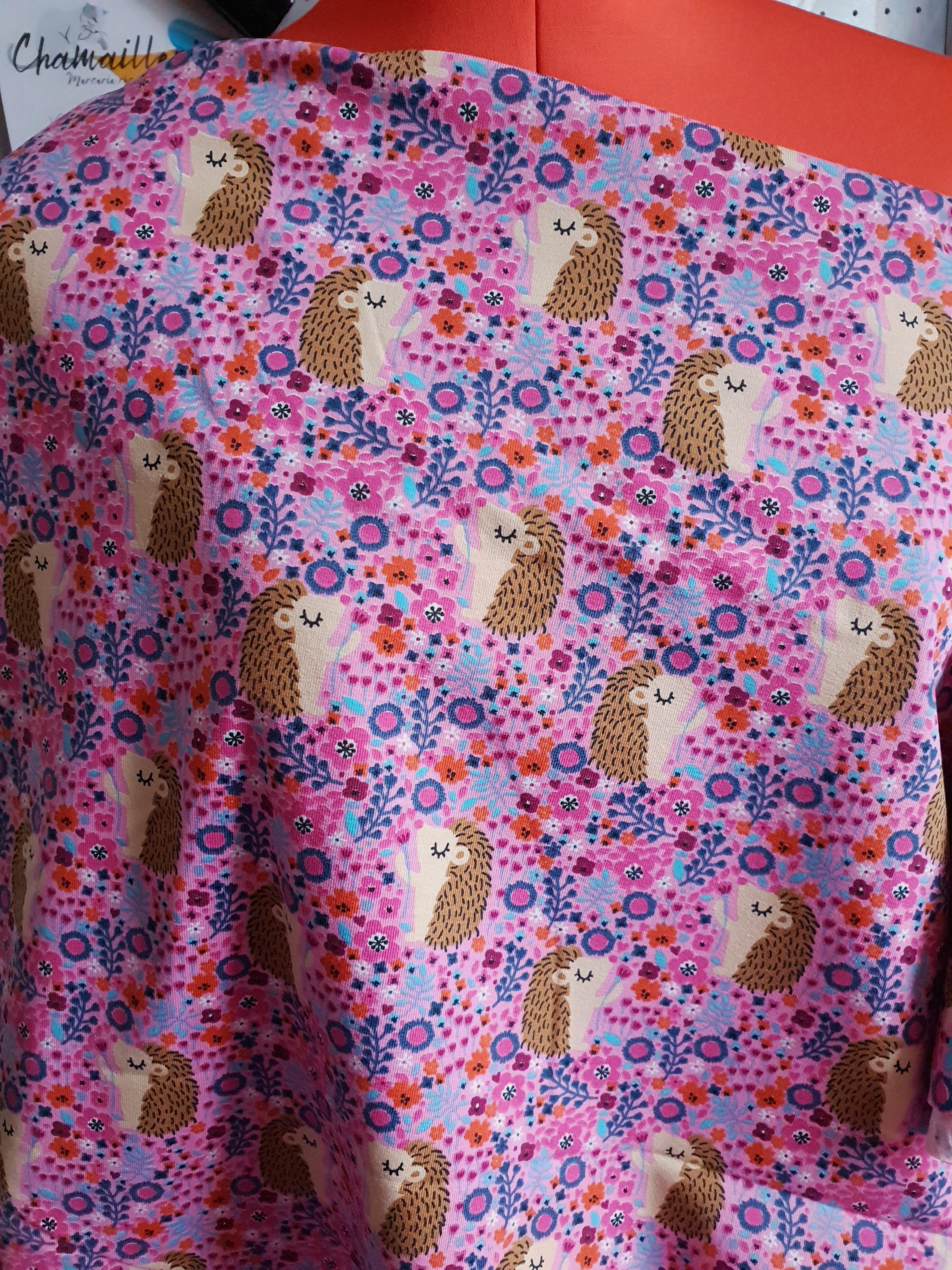 Il sera cousu avec un point extensible de votre machine à coudre, ou à la surjeteuse; et avec une aiguille "strecth" ou "jersey", cela pour éviter de casser la maille et pour avoir une couture élastique, tout comme le tissu.