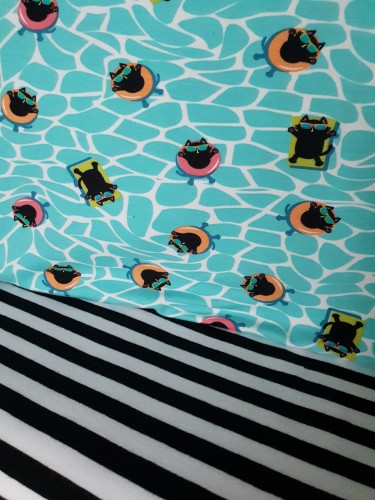 Il sera cousu avec un point extensible de votre machine à coudre, ou à la surjeteuse; et avec une aiguille "strecth" ou "jersey", cela pour éviter de casser la maille et pour avoir une couture élastique, tout comme le tissu.