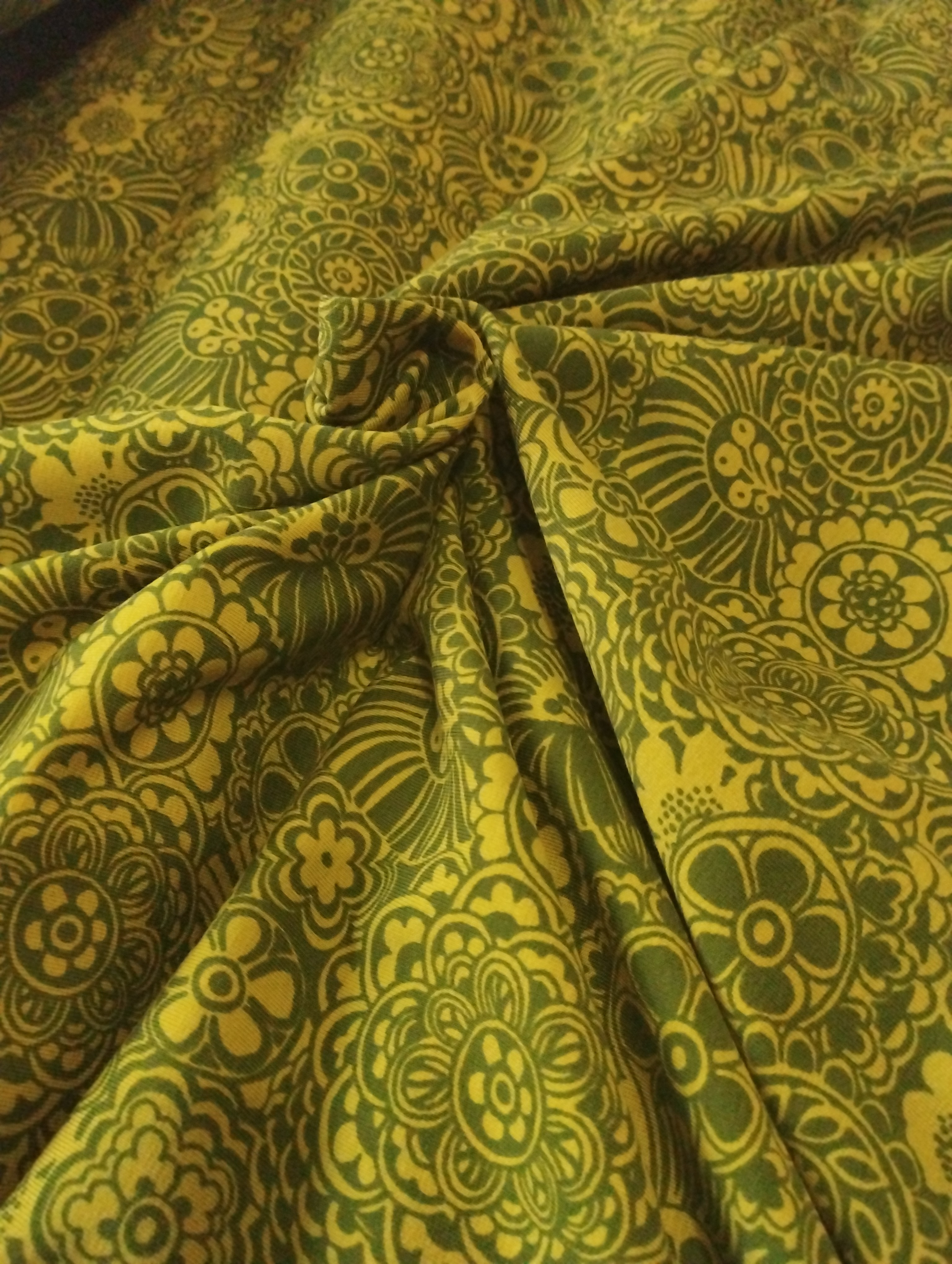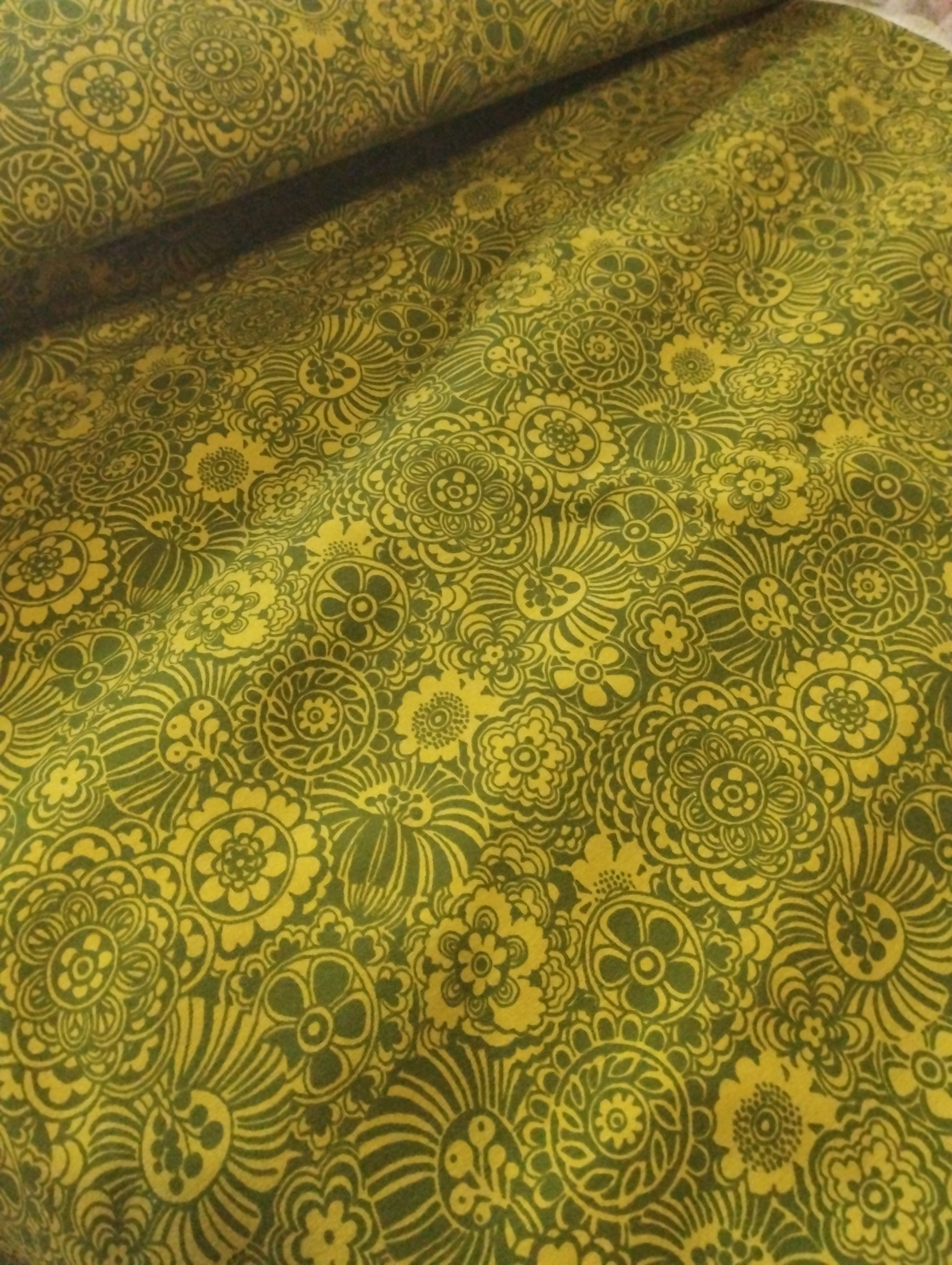 Jersey de Coton imprimé Fleurs Vintage vert sur fond vert