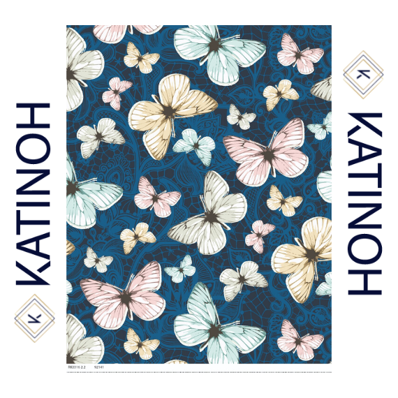 Tissu Softshell Papillons sur fond bleu marine avec arabesques. Intérieur Bleu marine.