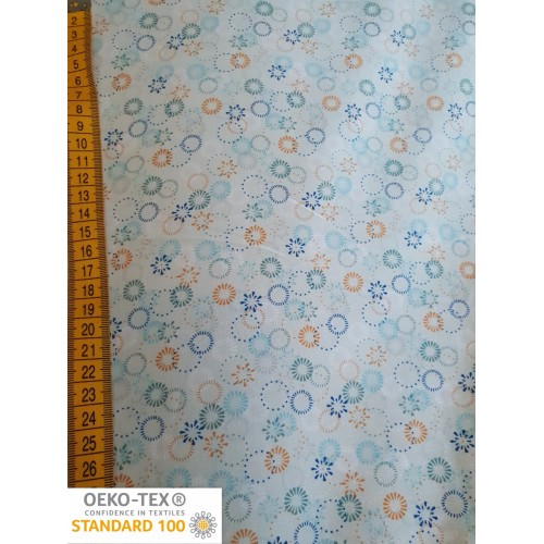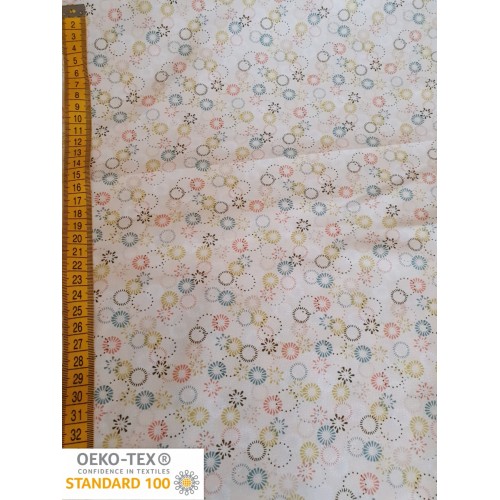Popeline de coton Fleurs Ocre Rose Bleu marine