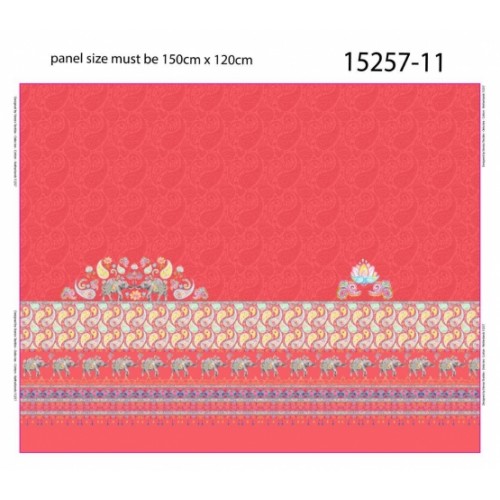 STENZO Panneau Jersey Eléphants et Lotus. Rouge