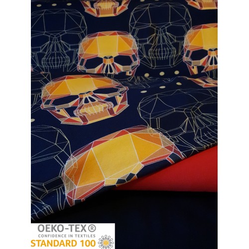 French terry - Sweat bouclette Coraux sur fond bleu nuit